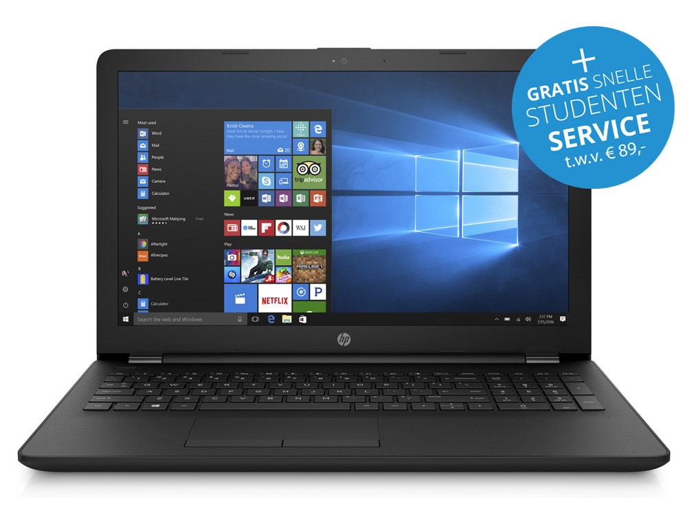 Elk jaar heeft CampusShop een selectie van zogenaamde ‘basis’ – maar kwalitatieve en krachtige - laptops in haar assortiment. Je leest het goed: kwalitatief èn krachtig. Zolang je niet de allernieuwste games speelt of video’s bewerkt, stel je geen zware systeemeisen. In dat geval is de HP 15-bs060nd een uitstekende keuze. Deze kan alle basistaken met gemak aan. Denk daarbij aan het bewerken van tekstbestanden, e-mailen, Skypen, het streamen van video’s en nog veel meer. De combinatie van Intel Celeron N3060 processor en 4 GB geheugen is prima geschikt om bijvoorbeeld naar Spotify luisteren terwijl je op internet naar informatie voor jouw verslag of scriptie zoekt. En met dual band AC WiFi doe je dat ook nog eens razendsnel!